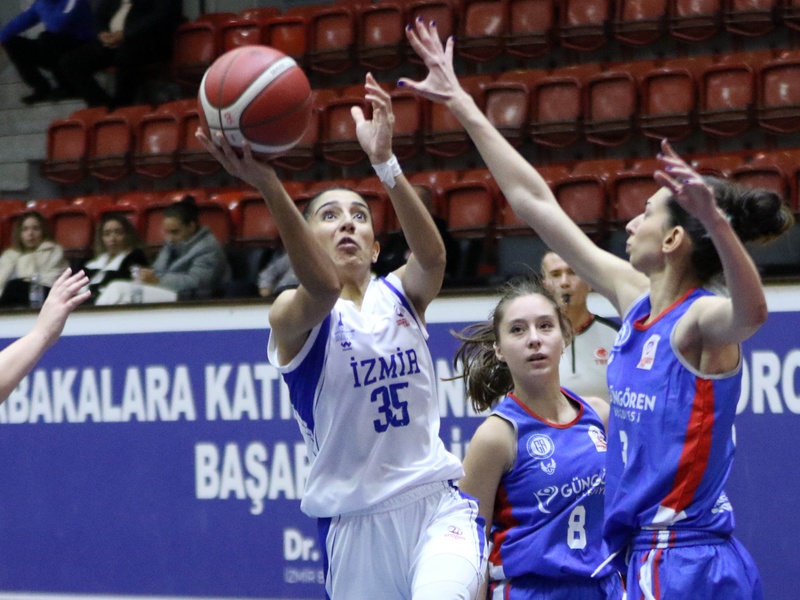 Kadınlar Bölgesel Basketbol Ligi'nin üçüncü hafta maçında İzmir Büyükşehir Belediyesi Spor Kulübü, evinde Güngören Belediyesi'ne 79-67'lik skorla mağlup oldu. Celal Atik Spor Salonu’ndaki karşılaşmada takımımız, ilk periyodu 14-13 önde kapatırken, devreyi de 34-34 eşitlikle kapattı. Üçüncü periyodu 54-53'lük skorla önde tamamlayan ekibimiz, salondan 79-67'lik skorla yenik ayrıldı. Ekibimizde Nimet Vatansever 17, Esin Azizoğlu 17, Buket Aydın 13, Sena Yılmaz 6, Alev Pelik 6, Pelin Yanık 5, Naz Pilav 2 ve Zekiye Sinç 1 sayı ile oynadı.