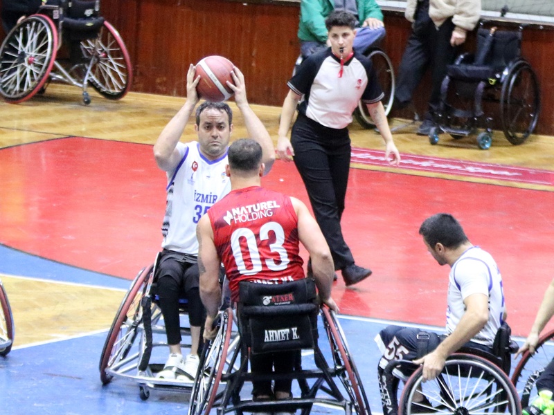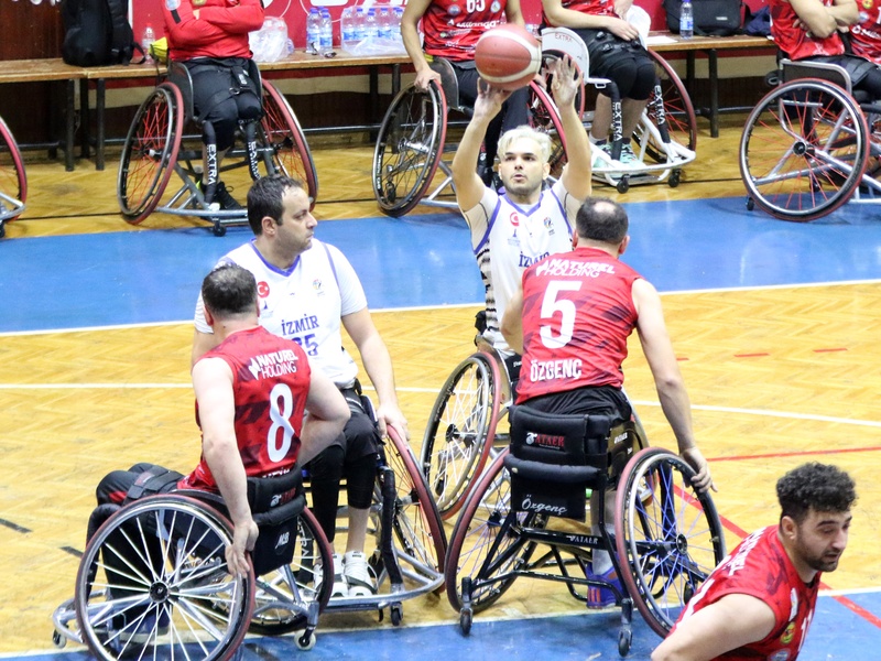 İzmir Büyükşehir Belediyesi Spor Kulübü Tekerlekli Sandalye Basketbol Takımımız, sekizinci hafta maçında evinde TSK'ya 62-57 mağlup oldu. Süper Ligin ikinci yarısının ilk maçında TSK'yı Celal Atik Spor Salonu'nda ağırlayan ekibimiz, karşılaşmanın ilk çeyreğini 15-14 önde tamamlamasına rağmen devre arasına 25-24 mağlup girdi. Üçüncü çeyreği 45-39 geride kapatan takımımız, salondan 62-57'lik skorla mağlup ayrıldı. Karşılaşmayı Kulüp Başkanımız Ertuğrul Tugay ve yönetim kurulu üyelerimizde takip etti.