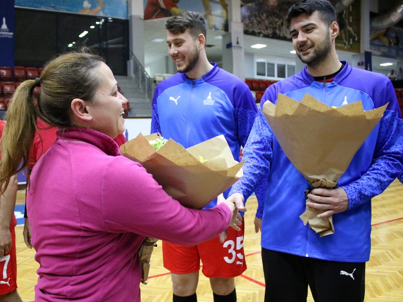Türkiye Süper Ligi’nde mücadele İzmir Büyükşehir Belediyesi Hentbol Erkek Takımı, Rize Belediyesi ile oynayacağı maç öncesinde kulübün kadın personellerine çiçek takdim etti.