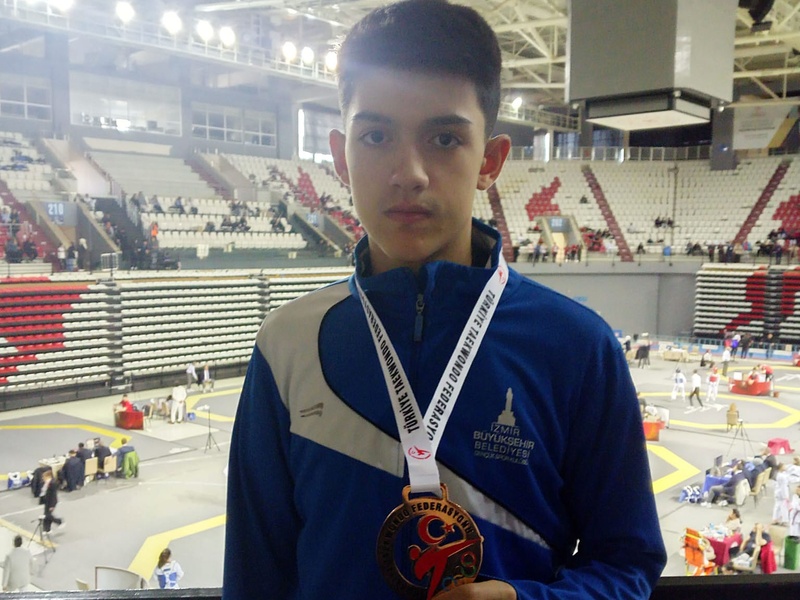 İzmir Büyükşehir Belediyesi Spor Kulübü tekvandocusu Efe Berk Fidan, Antalya Spor Salonu’nda düzenlenen ve 70 ilden 2 bin 800 sporcunun katıldığı Türkiye Yıldızlar Tekvando Şampiyonası’nda 57 kiloda tatamiye çıktı. 14 yaşındaki sporcumuz, sergilediği başarılı performansla bronz madalyanın sahibi oldu.