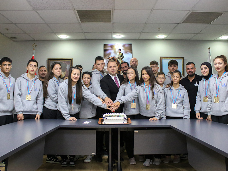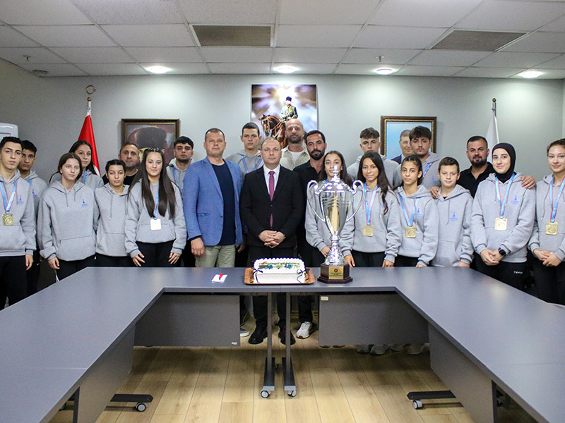 Kupalarıyla birlikte Celal Atik Spor Salonu’nda Başkan Alptekin’i ziyaret eden şampiyon judocular, pastalı kutlamada bir araya geldi. Başkan Alptekin, sporcuları ve antrenörleri tebrik ederek, emeği geçen herkese teşekkür etti.