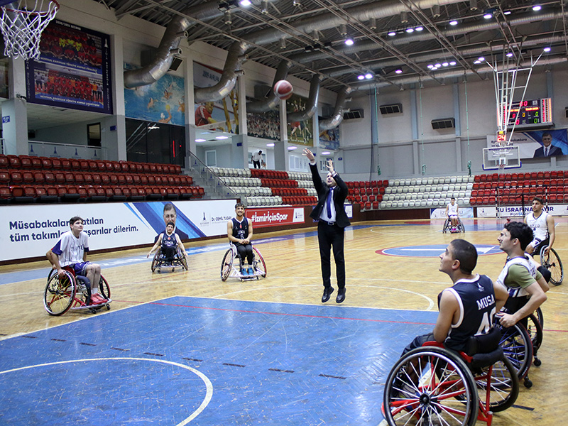 Programın ardından, Tekerlekli Sandalye Basketbol Takımımız, İzmir Tınaztepe Üniversitesi Basketbol Takımı ile günün anlamına özel bir gösteri maçı yaptı.