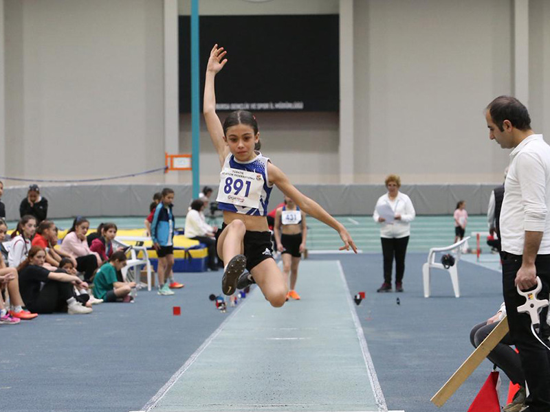 2013 doğumlu kızlar uzun atlama kategorisinde mücadele eden İlksu Eda Tonbaktepe ve