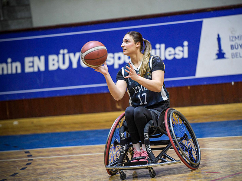 İzmir Büyükşehir Belediyesi Spor Kulübü Tekerlekli Sandalye Basketbol Takımı’nın tek kadın sporcusu 26 yaşındaki Medine Alper, henüz 10 yaşındayken beden eğitimi öğretmeninin yönlendirmesiyle spora adım attı. Uzun atlama ve üç adım atlamada yıllarca piste çıktı; hayatının ritmini spor belirledi. Ancak 19 yaşından sonra Medine Alper için bambaşka bir dönem başladı. Üniversitede antrenörlük eğitimi aldığı sırada yaptığı bir fitness antrenmanı sırasında omuriliği kırıldı. Sporla dolu geçen yıllar, bir anda yerini sessizliğe ve zorlu bir tedavi sürecine bıraktı. Tekerlekli sandalyede yeniden yaşam kurmaya çalışan Alper, hem fiziksel hem de ruhsal olarak büyük bir mücadele verdi. Pes etmeyi hiç düşünmedi. Spora olan tutkusu onu yeniden ayağa kaldırdı. 2022 yılında İzmir Büyükşehir Belediyesi Spor Kulübü’ne katılan Alper, bu kez parkelerde mücadele etmeye başladı.