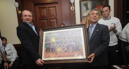 VOLEYBOLDA GM Capital Erkekler Avrupa Challange Kupası'nda mutlu sona ulaşan Arkas, ilk ziyaretini kendilerine en büyük desteği veren İzmir Büyükşehir Belediye Başkanı Aziz Kocaoğlu'na yaptı.