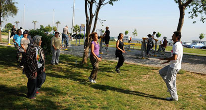 Çiğli’den Mersinli’ye, Alsancak’tan Buca’ya kadar bir çok yerde, Spor Akademisi’nden mezun antrenör hocalar, saat 07.00 ile 10.00 arasında parklara akın eden onlarca spor tutkununa ders veriyor. Uzmanlar, spor yapanlara yer hareketlerinin yanısıra, parklara ve rekreasyon alanlarına Büyükşehir Belediyesi tarafından yerleştirilmiş olan ve değişik kas gruplarını çalıştıran kondisyon aletlerin nasıl kullanılacağını da öğretiyor.
