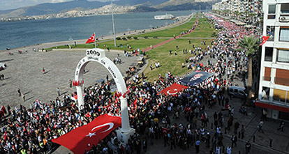 İZMİR, Aziz Ata'sını 71. ölüm yıldönümünde onbirlerce kişinin katıldığı bir yürüyüşle bir kez daha bağrına bastı.