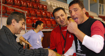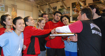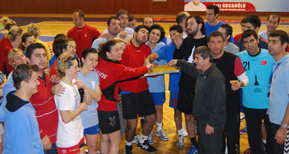 ERKEK Hentbol Takımımız, 4.tur mücadelesi için AEK karşısına çıkıyor. Bayan Takımımız, son çalışma öncesi baklava ziyafeti çekip, ekibimize moral verdi.ERKEK Hentbol Takımımız son virajda… Avrupa Kupa Galipleri Kupası’nda 4.turu hedefleyen mavi-beyazlılar, cumartesi günü saat 17.00’de başlayacak AEK maçının hazırlıklarını tamamladı. Eksik ve sakat oyuncu bulunmayan ekibimiz, ilk maçta elde ettiği avantajlı skora rağmen temkinli… Son antrenman öncesi Bayan Hentbol Takımımız, sürpriz yaparak, baklava ziyafeti çekti ve moral verdi. Antrenörümüz Süreyya Işıldak, galibiyete şartlandıklarını belirterek, “Zor bir karşılaşma oynayacağız. Rakibimizi güçlü olmasına rağmen Atina’da farklı yenmeyi başardık. Rövanşı da saha ve seyirci avantajını kullanarak kazanacağız. Hedefimiz çeyrek final… Tüm sporseverleri tribüne davet ediyoruz” dedi.