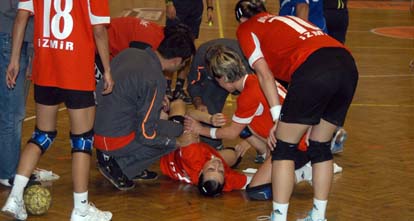 BAYANLAR Hentbol Süper Ligi’nde 7’de 7 yapan İzmir Büyükşehir Belediyespor, Anadolu Üniversitesi engelini çok rahat aştı: 37-29. Maçın ilk devresinde 24-8’lik skoru yakalayan İzmir temsilcisi, ikinci yarıda tüm genç oyuncularına forma vermesine rağmen mücadeleden 8 sayı farkla galip ayrılmayı başardı. İki takım cumartesi günü saat 18.00’de bu kez Türkiye Kupası ‘nde karşı karşıya gelecek. Bu arada 5. dakikada sakatlanıp oyunu terkeden İzmir BŞB’den Fatma’nın durumu cumartesi günü çekilecek MR’dan sonra belli olacak.