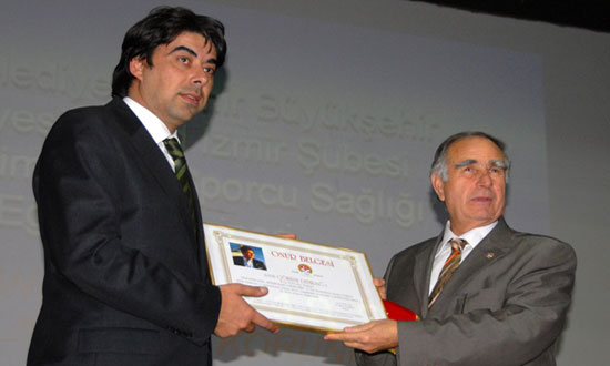 Seminerin bitiminde TÜFAD İzmir Şubesi Başkanı Dr. Şaban Acarbay, Foça 0Belediye Başkanı Gökhan Demirağ’a Onur Belgesi sunarken, İzmir Büyükşehir Belediyesi Ar-Ge ve Spor Okulları Koordinatörü Hüsnü ORAL da İzmir Büyükşehir Belediye Başkanımız Aziz Kocaoğlu adına spor bilimleri ve sporcu sağlığı konusunda sporculara verdiği destekten ötürü teşekkür plaketi verdi.