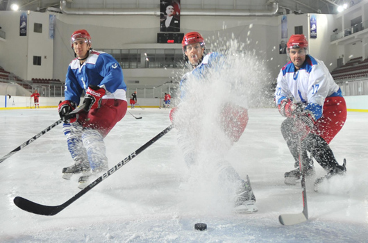 BUZ Hokeyi Takımımız, Süper Lig play-off maçlarında başarılı sonuçlar elde ederek şampiyonluk kupasını kazanmak istiyor.2011-2012 Sezonu’nun şampiyonunu belirleyecek Türkiye Buz Hokeyi Süper Ligi play-off maçları heyecanı, 14-18 Mart tarihlerinde İzmir’de oynanacak maçlarla başlayacak. Buz Hokeyi Süper Ligi’nde A ve B gruplarında ilk iki sırayı alan takımların play-off maçlarında şampiyonluk için mücadele edeceği maçlar, İzmir Büyükşehir Belediyesi’nin Bornova’daki Buz Sporları Salonu’nda oynanacak. Nefesleri kesecek olan Buz Hokeyi yarı final ve final maçlarını İzmirliler, ücretsiz izleme imkânına sahip olacak. Erzurum Gençlikspor, Kocaeli Büyükşehir Belediyesi Kağıtspor ve Ankara Başkent Yıldızları karşısında şampiyonluk mücadelesi verecek olan İzmir Büyükşehir Belediyesi Buz Hokeyi Takımı, Çarşamba günü yarı finalde Kocaeli ekibiyle karşılaşacak. Başkan Yıldızlar Spor Kulübü ise Erzurum Gençlik Spor Kulübü karşısında final şansı arayacak. 15 Mart Perşembe günü saat 19.00’da ise bu kez finale kalan takımlar kozlarını paylaşacak. Bu karşılaşmanın rövanşı 17 Mart Cumartesi günü saat 18.00’de oynanacak. İlk karşılaşmayı kazanan takım bu maçta da galip gelmeyi başarırsa şampiyonluğa ulaşacak. İlk iki maç sonunda takımların birer galibiyete ulaşması durumunda ise 18 Mart Pazar günü saat 15.00’de serinin üçüncü ve son maçı oynanacak. Bu maçın galibi 2011-2012 Türkiye Buz Hokeyi Süper Ligi’nin şampiyonu olacak.