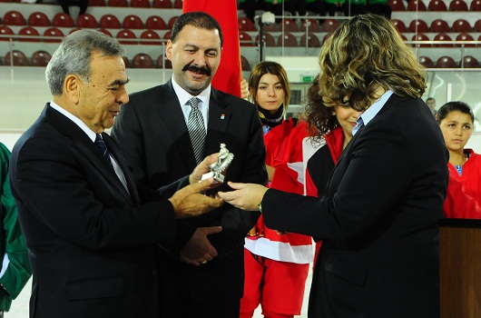 Bu ilk müsabaka öncesi düzenlenen resmi açılış töreninde, Uluslararası Buz Hokeyi Federasyonu’ndan Turnuva Başkanı Veronika Muehlhofer, İzmir Büyükşehir Belediye Başkanı Aziz Kocaoğlu’na yaptığı katkılardan dolayı teşekkür şilti takdim etti.