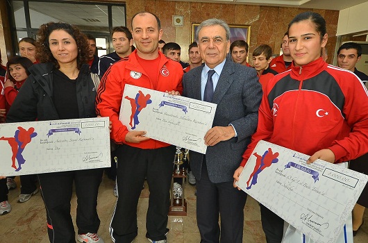 Ferdi Greko-Romen Türkiye Şampiyonası ve Ferdi Bayanlar Türkiye Şampiyonası ile aynı şampiyonalarda takım halinde alınan dereceler nedeniyle sporcu ve antrenörlere para ödülleri sembolik çeklerle verildi. Uluslararası turnuvalarda madalya kazanan Ahmet Taçyıldız, Mevlüt Arık ve Bayanlar Türkiye Şampiyonu Buse Tosun, ödüllerini Başkan Kocaoğlu’nun elinden aldı.