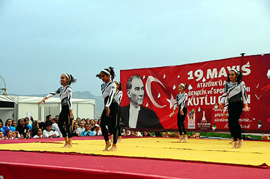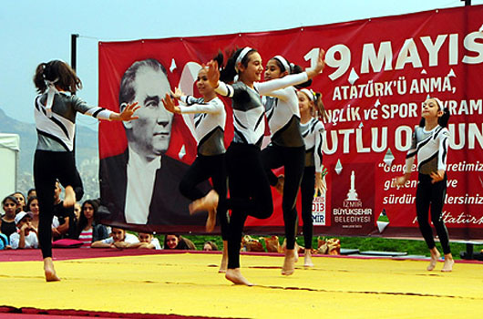 İZMİR Büyükşehir Belediyesi’nin “19 Mayıs Atatürk’ü Anma ve Gençlik ve Spor Bayramı” nedeniyle düzenlediği “Cimnastik Festivali” renkli görüntülere sahne oldu.