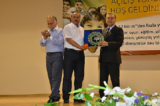 Bayraklı Cengizhan Mahalle Muhtarı Yusuf Özden, tören sonunda hizmetlerinden ötürü Başkan Kocağlu’na üzerinde Atatürk resmi olan tabak armağan etti.