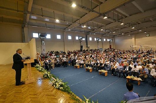 “İnciraltı’nda 1250 dönüm kent ormanı, Kadifekale’de 440 dönümlük yeşil alan, Sasalı’da 425 dönüm Doğal Yaşam Parkı, yine Sasalı’da 2500 dönümlük alanda Türkiye’nin en büyük piknik alanı, 6.5 kilometrelik Homeros Vadisi, Bornova Bayraklı arasında 231 dönüm Aşık Veysel Rekreasoyna Alanı, Buz Pateni ve 5 bin kişilik anfi tiyatro ve Yekli üzerinde 500 dönümlük orman oluşturduk. Bayraklı’da kentsel dönüşüm projesine başlıyoruz. Kimsenin hakkını yemeden, adil, eşit davranarak ve birlikte karar vererek, katılımcı bir anlayışla kentsel dönüşümü Bayraklı’dan, 600 dönümlük alanda gerçekleştiriyoruz. Kentsel dönüşümle yeşili 4 katına çıkarıyoruz. Ekrem Akurgal Yaşam Parkı ile birlikte, bölgedeki yeşil alan miktarı 8.5 katına yükselecek. Biz yaşanılacak, çocuklarımıza, torunlarımıza miras bırakabileceğimiz, dünya kentleriyle yarışacak bir kent yaratmaya çalışıyoruz. Bayraklı’dan Uzundere’ye, Aktepe Emrez’den Balllıkuyu’ya, Ege Mahallesi’nden Çimentepe’ye, Örnekköy’e her tarafta kentsel dönüşüm projelerini başlatıyoruz. 9 yıldır ne kimseyi aldattık, ne kimseye yalan söyledik, ne de kimseden beş kuruş menfaat aldık. Hep sözümüzde durduk. Size güvendik ve hep sizden güven gördük. Bize güvenin, bize inanın. Bu proje bittiği zaman en fazla mutlu olacak, en fazla kazançlı çıkacak olan, burada yaşayan insanlarımızdır. Bize inanın, güvenin ki, biz İzmir’in nereye gittiğini, nasıl kalkındığını, İzmir gençliğinin, işsizlerin nasıl iş bulacağını, lokmamızın, ekmeğimizin nasıl büyüyeceğini sizlere hep birlikte gösterelim.'