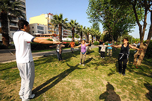 eğitmenleri eşliğinde halka sabah sporu yaptırılacak. İnciraltı Engellier Merkezi