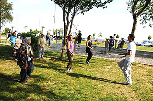 Veysel Rekreasyon alanlarında bir eğitmen halka spor yaptırarak