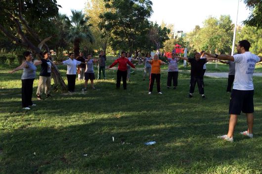 parklarında spor akademisi eğitmenleri eşliğinde halka sabah