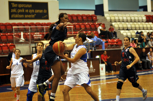 BAYAN Basketbol Takımımız ligdeki ikinci maçında evinde Antalya Yıldızları'na yenildi. İZMİR BŞB:52 - ANTALYA:87 TKB2L'de mücadele eden İzmir Büyükşehir Belediyespor, ligdeki ikinci maçında Antalya Yıldızları ile karşılaştı. Celal Atik Spor Salonu'ndan oynanan karşılaşmaya ekibimiz tutuk başlarken, ilk periyot 16-8 Antalya Yıldızları'nın üstünlüğü ile geçildi. İkinci periyotta da istediği oyunu sahaya yansıtamayan mavi-beyazlılar soyunma odasına 49-18 geride girdi. 3.periyotta savunmayı sertleştiren ekibimiz farkı eriterek son periyoda 65-38 geride başladı. Son periyotta farkın kapanmasına izin vermeyen konuk ekip mücadeleyi 87-52 kazandı.