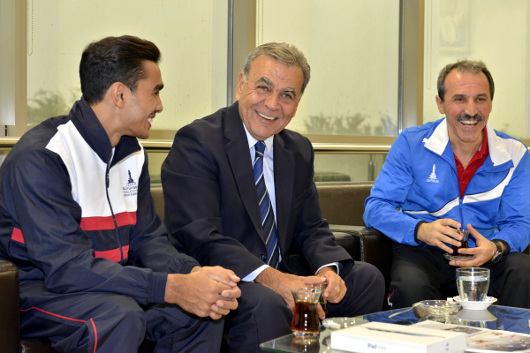 hedefinin 2016 Rio Olimpiyatları olduğunu da sözlerine ekledi. Başarılı sporcuyu ve antrenörünü
