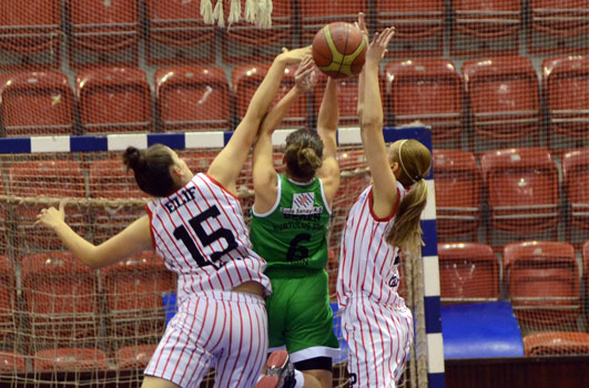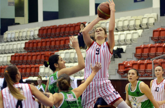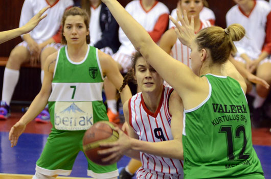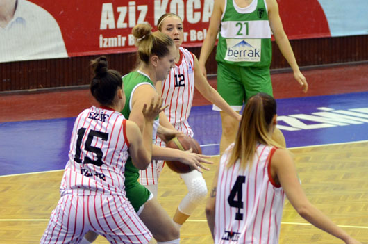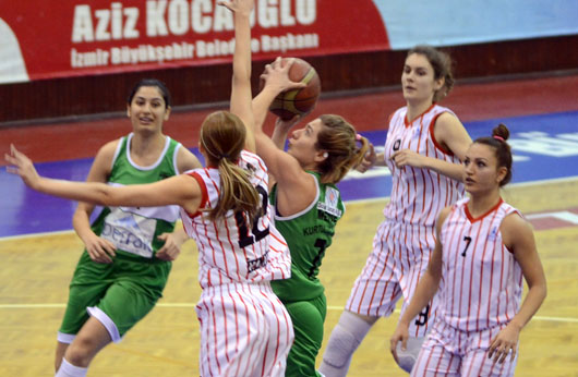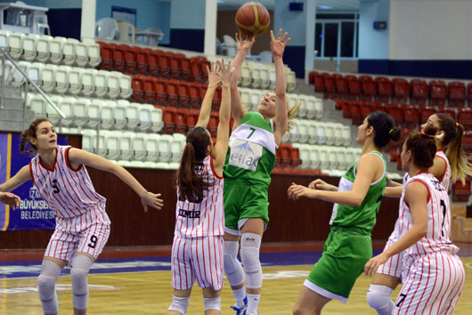 BAYAN Basketbol Takımımız, Mersin Kurtuluş'a 25 sayı fakla mağlup oldu. İZMİR BÜYÜKŞEHİR BELEDİYESPOR:55 – MERSİN KURTULUŞ:80 SALON: Celal Atik İZMİR BÜYÜKŞEHİR BELEDİYESPOR: Begüm 6, Burcu 10, Buket Yeşil 3, Buket Çelen 20, Gülay 5, Sinem 3, İldem 8, Elif MERSİN KURTULUŞ: Gizem 15, Merve Aygül 11, Melike 8, Betül 6, Valeba Kast 6, Aysun 15, İlkay 12, Deniz 5, Ceren 2 1.PERİYOT: 20-23 (Mersin Kurtuluş lehine) DEVRE: 32-44 (Mersin Kurtuluş lehine) 3.PERİYOT: 42-62 (Mersin Kurtuluş lehine) MAÇ SONUCU: 55-80 (Mersin Kurtuluş lehine) TKB2L'de ikinci turda mücadele eden İzmir Büyükşehir Belediyespor, evinde Mersin Kurtuluş'a 55-80'lik skorla mağlup oldu. Celal Atik Spor Salonu'nda oynanan karşlaşmaya iyi başlayan mavi-beyazlılar, karşılıklı basketlerle ilk beş dakikayı 9-14 gerde kapatıtı. Alınan mola sonrası toparlanarak üstüste sayılar bulan İzmir BŞB, skoru 20-20'ye getirdi ve ancak bu periyodu 20-23 geride kapattı. İkinci periyoda kötü başlayan mavi-beyazlılar, rakip potaya 6.30 dakikada 1 sayı bulurken, konuk takım 14 sayı kaydederek farkı 16 sayıya (21-37) kadar çıkardı. İzmir BŞB devreye 32-44'lük skorla yenik girdi. Karşılaşmanın ikinci yarısına tutuk başlayan İzmir BŞB, üçüncü periyodu 42-62 , maçtan ise 55-80'lik skorla yenik ayrıldı. İzmir BŞB, gelecek hafta Mudanya Dinçspor ile deplasmanda karşılaşacak.