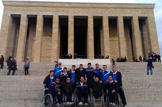TEKERLEKLİ Sandalye Basketbol Takımımız, pazar günü oynayacağı Yeni Mahalle Belediye karşılaşması öncesi Anıtkabir'e gitti. GARANTİ Tekerlekli Sandalye Basketbol Ligi'nde mücadele eden İzmir Büyükşehir Belediyespor, Ata'nın huzuruna çıktı. Mavi-beyazlılar, pazar günü saat 14.00'te karşılaşacağı Yeni Mahalle Belediyespor maçı öncesi Anıtkabir'e ziyarette bulundu. Tam kadro Ankara'da yer alan kafile Anıtkabir'in her köşesinde sık sık fotoğraf çektirdi. Maç saatini bekleyen mavi-beyazlılarda antrenör İsmail Kar,"Maç öncesi Anıtkabir'e ziyarette bulunmak istedik. Manevi açıdan önemli bir organizasyondu. Yeni Mahalle Belediyespor'u yenip İzmir'e galibiyetle dönmek istiyoruz" diye konuştu.