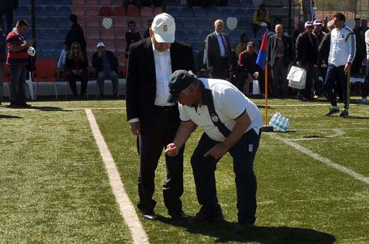 birlikte hatıra fotoğrafı çektirdiler. Maç öncesi ısınan