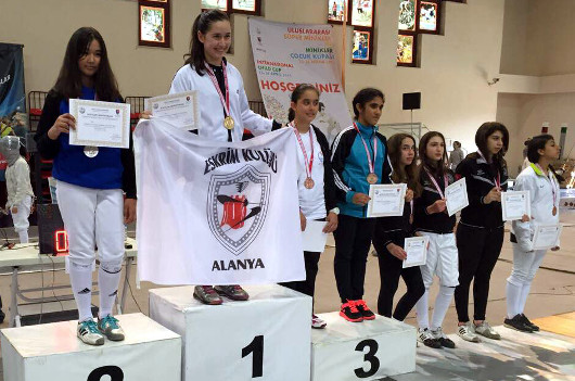 ULUSLARARASI Eskrim Çocuk Kupası'nda A ve B takımımız üçüncü olurken, İdilsu Ağaoğlu ise gümüş madalya kazandı. 22-26 Nisan'da Antalya'nın Alanya ilçesinde düzenlenen Uluslararası Eskrim Süper Minikler ve Minikler Çocuk Kupası'nda İzmir Büyükşehir Belediyespor iki kupa ve bir de gümüş madalya kazandı. Türkiye, Gürcistan, Suudi Arabistan, Kuveyt, Bulgaristan, Kanada ve Rusya olmak üzere 9 ülkeden yaklaşık bin 500 sporcunun katıldığı şampiyonada minik erkekler flore de A ve B takımlarımız Avrupa Üçüncülüğüne ulaştı. 27 takım içerisinde gruptan çıkarak çeyrek finale kalan Batu Yarkın-Neşet Seçer-Mustafa Ata Şimşek'ten oluşan A Takımımız, Çankaya Eskrim'i yenerek son dörde adını yazdırdı. A Takımımız, yarı finalde Altunyurt'a yenilerek Avrupa üçüncülüğü kazandı. Tolga Erman- Onur Küçüksüslü-Ömer Orhan Yılmaz'dan oluşan B Takımımız ise çeyrek finalde Göztepe'yi yenerek yarı finale yükseldi. Bu turda ise Rus temsilcisine yenilen mavi- eyazlılar şampiyonayı üçüncülük ile tamamladı. Epe'de ise İzmir BŞBli sporcumuz İdilsu Ağaoğlu, toplam 108 eskrimci arasında gümüş madalyanın sahibi oldu. Uluslararası Eskrim Süper Minikler ve Minikler Çocuk Kupası'nda büyük bir başarıya imza attıklarını belirten Antrenör Burak Oray, “İzmir Büyükşehir Belediyesi olarak bu önemli turnuvaya hazırlandık ve karşılığını aldık. Antrenörler olarak ben ve Tolga Gökalp bu hedef şampiyonadan kupa ve madalyalarla dönmekten mutluyuz. Bizlere desteklerini esirgemeyen kulübümüz yönetici ve idarecilerimize teşekkürlerimizi sunuyoruz” dedi.
