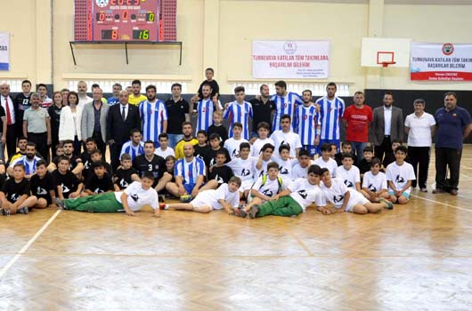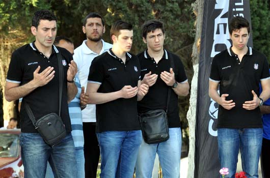 andı. Takımımız, Soma İlçe Mezarlığı’nda vefatlarının 1. yıl dönümünde 301 madencimizi mezarları başında andı. Duygusal anların yaşandığı ziyaret okunan duaların ardından sona erdi. Muzaffer Ecemiş Spor Salonu’nda düzenlenen anma törenine takımımızın yanı sıra antrenörlerimiz ve İzmir Büyükşehir Belediyespor Genel Sekreteri Kerem Ünal da yer aldı. Törende Beşiktaş Mogaz takımı ile ufak bir gösteri maçı yapan mavi-beyazlılar, pozisyon aralarında yerlerini minik hentbolculara bıraktı. Maç sonunda minik hentbolcularla ilgilenen oyuncularımız, minik sporculara imza dağıttı ve fotoğraf çektirdi.