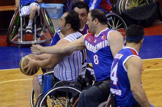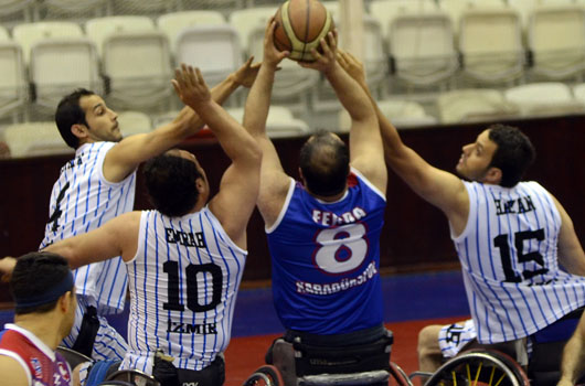 TEKERLEKLİ Sandalye Basketbol Takımımız, evinde Kardemir Karabükspor'a 3 sayı farkla mağlup oldu. GARANTİ Tekerlekli Sandalye Basketbol Süper Ligi'nde İzmir Büyükşehir Belediyespor, evinde Kardemir Karabükspor'a 76-79 mağlup oldu. Celal Atik Spor Salonu'nda oynanan karşılaşmanın ilk periyodu karşılıklı basketlerle başladı ve mavi-beyazlılar bu çeyreği 20-19 önde kapattı. İkinci periyotun başında başabaş bir mücadele koyan İzmir BŞB, son dakikalarda üst üste hata yapmasıyla devreye 35-40 geride girdi. Üçüncü periyotta İzmir BŞB hücumda etkili olmayınca rakibini bir türlü yakalayamadı ve son çeyreğe 51-62 geride girdi. Son periyotta farkı azaltmasına rağmen mavi-beyazlılar karşılaşmadan 76-79'luk skorla yenildi.