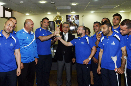 İZMİR BŞB Başkanı Aziz Kocaoğlu, Süper Lig'e yükselen Ampute Futbol Takımımız ziyaret etti ve başarılarından dolayı kutladı. İZMİR Büyükşehir Belediye Başkanı