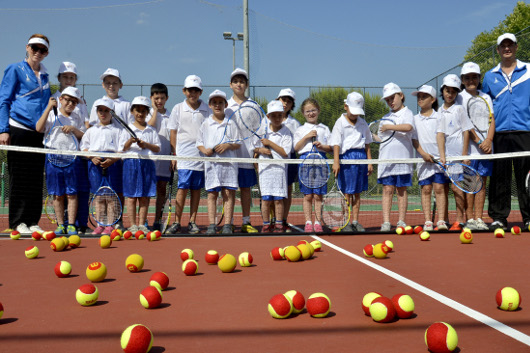 tenis eğitimi alan çocuklara, kullandıkları tüm malzemeler