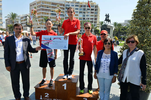 kategorilerinde ilk üçe giren atletlerin dereceleri ise şöyle: ERKEKLER: 1. Fetene Alemu Regasa - (01.06.47) 2. Sulte Gure Timberle - (01.07.55) 3. Ercan Muslu - (01.08.40) KADINLAR: 1. Senem Eser - (01.18.09) 2. Şeyma Yıldız - (01.18.57) 3. Elif Karabulut - (01.21.57) BAŞKAN’DAN İZMİRLİLERE 9 EYLÜL
