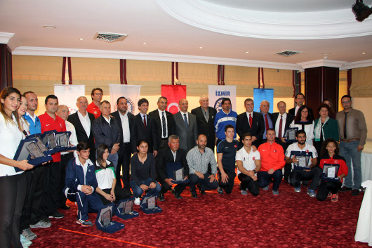 AMATÖR Spor Haftası etkinlikleri kapsamında “İzmir sporun enleri" ödüllerinde kulübümüzden Nuri Özel ve Buse Tosun seçildi. İZMİR'de Amatör Spor Haftası etkinlikleri kapsamında branşlarında derecelere giren sporculara ve antrenörlerine "İzmir sporun enleri" ödülleri verildi. İzmir Büyükşehir Belediyesppor'dan tekvando branşında Nuri özel ve güreş branşında ise Buse Tosun ödül almaya hak kazandı. Ege Palas Oteli'nde düzenlenen törende konuşan İzmir Vali Yardımcısı Uğur Kolsuz, yıl içinde uluslararası organizasyonlarda dereceye giren sporcuları ve antrenörlerini kutladı. Gençlik ve Spor Bakanlığı başta olmak üzere kulüpler, aileler ve sporcuların özveriyle çalıştığını kaydeden Kolsuz, "Bu başarılara herkesin büyük katkısı var. Spor yapanların yaygınlaşmasını hedefliyoruz" dedi. Gençlik Hizmetleri ve Spor İl Müdürü Ali Osman Tatlısu da amaçlarının herkesi spor yaptırmaya özendirmek olduğunu belirterek, "Amatör Spor Haftası kapsamında bizlere bildirilen en başarılı sporcular için sembolik bir tören düzenledik. Her zaman size desteklerimizi sürdüreceğiz" diye konuştu. Törende atletizmde Cemre Bitgin, bilardoda Serdar Gümüş, cimnastikte Ahmet Önder ile İbrahim Çolak, güreşte Buse Tosun, işitme engelliler atletizmde Muhammed Çakır, tekvandoda İlayda Aktay, Nuri Özel ve Semra Yıldırım'ın yanı sıra İzmirspor 19 yaş altı ve Konak Belediyespor kadın futbol takımlarına ödülleri verildi.