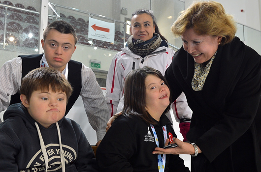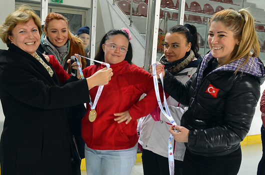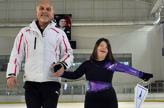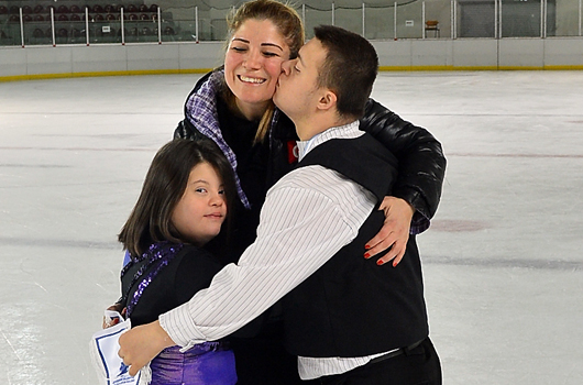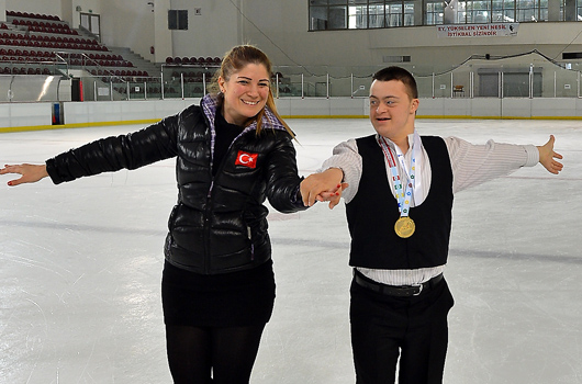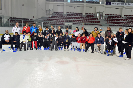 kapsamında, engelli öğrencilere buz pistinde eğitim veriliyor.