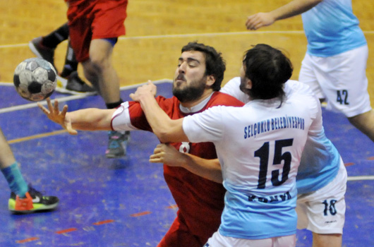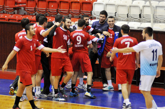 HENTBOL Erkekler 1. Ligi’nde yer alan takımımız rakibini çekişmeli geçen bir mücadele sonunda mağlup etti. İZMİR BŞB, rakibi önünde ilk dakikadan itibaren elde ettiği skor üstünlüğünü ele geçirdi. İki takımda birbirine bariz bir üstünlük sağlayamazken, ev sahibi İzmir BŞB, yakaladığı avantajı iyi kullanamayı bildi. İlk 10 dakikalık bölüm 5-4 İzmir BŞB’nin üstünlüğü ile geçildi. 20. dakika da 11-9 mavi beyazlı ekibin üstünlüğü ile tamamlanırken, karşılaşmanın ilk yarısı 16-15 İkinci yarının ilk 5 dakikalık bölümü geride kalırken ev sahibi ekip 3 sayılık (19-16) avanta elde etti. Ancak Selçuklu Belediye aradaki farkı kapatarak 22-22’de eşitliği sağladı. Maçta son 10 dakikaya 26-25 İzmir BŞB önde girdi. Konuk takım 52. dakika geride kalırken 26-26 eşitliği sağlarken, İzmir BŞB bu gole hemen karşılık vererek tekrar öne geçmeyi başardı. Son dakikaları büyük çekişmeye sahne olan maçta İzmir BŞB, son 30 saniyeye 31-29 önde girmeyi başarırken, konuk takım farkı bir sayıya indirmesine rağmen Sami durumu 32-30 yaparken maç da bu sonuçla tamamlandı. İzmir BŞB, sahada Gökhan Şanlı, Cihan Polat 7, Sami Küçükarabacı 4, Göksel Yünel 4, Kerim