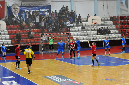 farkı üçe (13-10) yükselten İzmir BŞB, Fatma Atalar’ın golüyle de 33. Dakika geçilirken