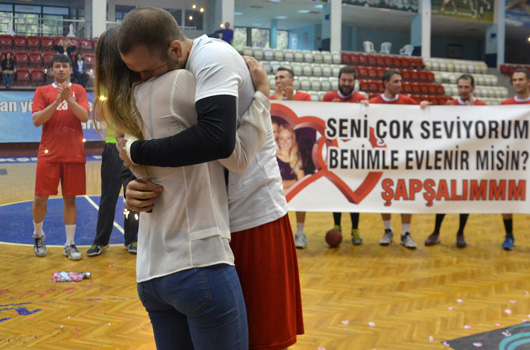 SPORCUMUZ Doğancan Ağır, Sakarya BŞB maçı ardından tribünde kendisini izleyen kız arkadaşına sürpriz bir şekilde evlenme teklif etti. ERKEKLER Hentbol 1. Ligi’nin 26.