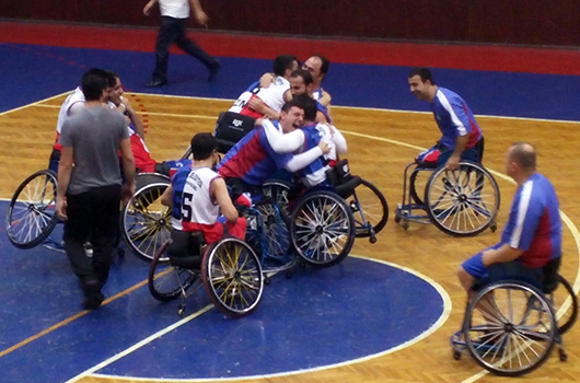 GARANTİ Tekerlekli Sandalye Basketbol Ligi'nde takımımız, Engelli Yıldızları mağlup ederek önemli bir galibiyet elde etti. İZMİR BŞB: 63 ENGELLİ YILDIZLAR:60 TEKERLEKLİ Sandalye Basketbol Takımımız 15.hafta maçında sahasında konuk ettiği Engelli Yıldızlar'ı 63-60 mağlup etti. Celal Atik Spor Salonu'nda oynanan karşılaşmanın ilk çeyreğini 15-14 önde geçen ekibimiz, ilk yarıyı da 31-24 önde kapattı. Üçüncü periyotta da iyi oyununu sürdüren mavi-beyazlılar son çeyreğe 50-44 önde girdi. Dördüncü periyot son derece çekişmeli geçerken, takımımız son dakikalardaki akıllı oyunuyla karşılaşmadan 63-60 galip ayrılarak play-off yolunda önemli bir galibiyet elde etti. 1.PERİYOT:15-14 2.PERİYOT:31-24 3.PERİYOT:50-44 MAÇ SONUCU:63-60