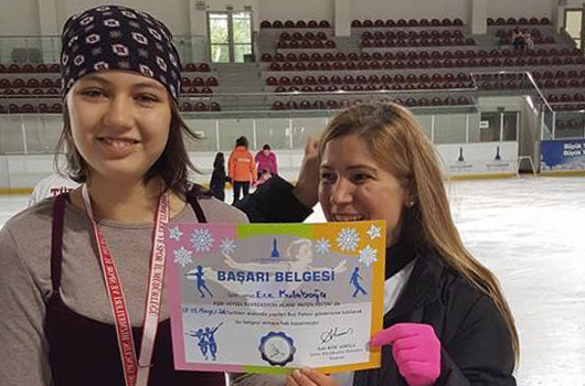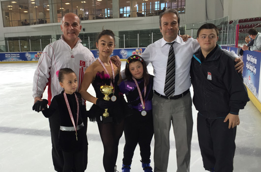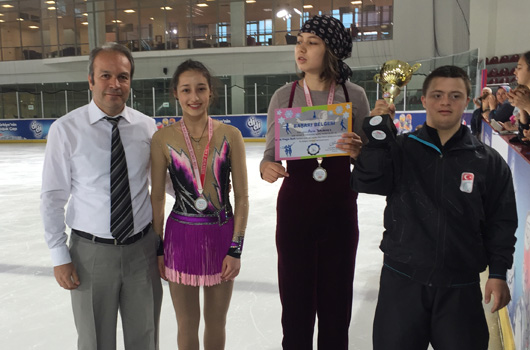 BUZ Pisti'nde engelli vatandaşlar 12 milli sporcularımıza kupa takdim etti. BORNOVA'daki Uluslararası Buz Sporları