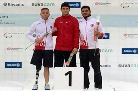 PARALİMPİK Milli takımında yer alan sporcumuz Nurullah Kart, İsviçre'de yapılan Grand Prix yarışlarında 3 kez kürsüye çıktı.İZMİR Büyükşehir Belediyespor'un milli paralimpik atleti Nurullah Kart, İsviçre'de yapılan Grand Prix 2016 yarışlarında 3 kez kürsüye çıkma başarısı gösterdi. Milli sporcu, 100 metrede üçüncü olarak kürsüye çıkarken, 200 metrede ikinci sırada yer aldı. Nurullah Kart, 4*100 metre bayrak takımında da yer alırken, bayrak takımı ikinci sırada yer aldı. Ancak Hollanda takımının diskalifiye olmasıyla milli takımımız kürsünün en üst basamağına çıktı. İzmir Büyükşehir Belediyesporlu sporcu, 4*100 metre bayrak takımının 52,52'lik derecesiyle kırdığı Türkiye rekoruna da adını yazdırmış oldu.