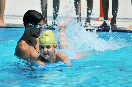 İZMİR Büyükşehir Belediyespor’un açtığı spor okulları içerisinde en büyük ilgiyi yüzme branşı görüyor.YAZ Spor Okulları’nda en büyük ilgi yüzme branşına gösterilirken, bu branşa olan ilgi bu dönemde değişmedi. Yüzme, İzmir Büyükşehir Belediyespor’un 17 branşta açtığı spor okulları içerisinde en çok ilgi gösterilen branş olarak ilk sırada yer alıyor. Fuar Kültürpark içerisinde bulunan yarı olimpik havuzda verilen kursta 5-17 yaş arasında çocuklar eğitim alıyor. Pazartesi, salı, çarşamba ve perşembe günleri sabah 10:00’dan 17:00’ye kadar olan süre içerisinde kursiyerlere birer saatlik periyotlar halinde ders veriliyor. 14 uzman eğitmen gözetiminde verilen derslerde çocuklara temel ve teknik eğitim konularında eğitim veriliyor.