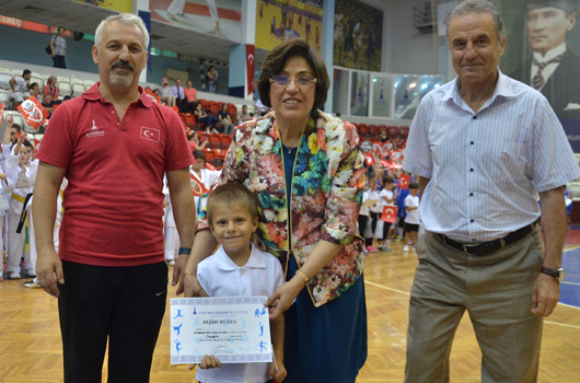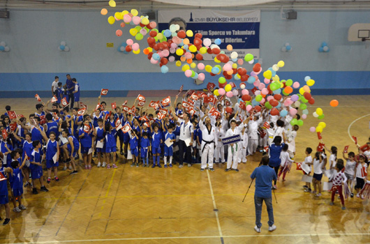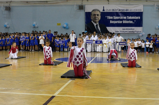 TÜRK spor altyapısının lokomotifi İzmir BŞB, bu yaz da 10 bin çocuğun sporla tanışmasını sağladı. İZMİR Büyükşehir Belediyesi'nin öğrencilerin yaz tatilini verimli bir şekilde geçirmesi ve aynı zamanda yetenekli çocukların erken yaşlarda spora yönlendirilmesi için kurduğu yaz spor okulları bu yıl da büyük rağbet gördü. Çocuklarının ekonomik şartlarda ve güvenilir bir ortamda spor yapmasını isteyen ailelerin tercihi İzmir Büyükşehir Belediyesi Gençlik ve Spor Kulübü Yaz Spor Okulları oldu. 21 branşta 80 eğitmenle kapılarını açan spor okullarından yaz boyunca 10 bin çocuk yararlandı. 3 aylık dönemde 11 ayrı merkezde eğitim alan kursiyerler, basketboldan, tenise, futboldan, yüzme, cimnastik, tekvando ve atletizme kadar sporun birçok branşıyla tanışma imkanı buldu. SEZON TÖRENLE KAPANDI Yaz tatilinin sona ermesiyle birlikte 4 ayrı merkezde yapılan kapanış törenleri ise şenlik havasında geçti. Ord. Prof. Dr. Ekrem Akurgal Yaşam Alanı'nda yapılan törende aileler çocuklarının yaz boyu kazandığı becerileri gururla izledi. Minik sporcular cimnastik, voleybol, basketbol, tekvando ve futbol branşlarında gösteriler yaparken, katılan tüm sporculara madalya ve sertifika dağıtıldı. Evka-4 Spor Salonu'ndaki törenlerde ise minik cimnastikçiler ilgi odağı oldu. Sergiledikleri figürler ve danslar tribünleri dolduran ailelerinden büyük alkış topladı. Yaz spor okullarının en gözde branşı yüzmede 5-6 yaş grubundaki minik yüzücüler ilk kulaçlarını attıkları Celal Atik Yüzme Havuzu'nda anne ve babalarına ayrı bir gurur yaşattı. Celal Atik Spor Salonu'ndaki törende de bine yakın spor okulu öğrencisi gösteri yaptı. Törenleri izleyen İzmir Büyükşehir Belediyesi Gençlik ve Spor Kulübü Başkanı Pervin Şenel Genç, Spor Direktörü Zeynel Canol ve kulüp idarecileri de bu büyük heyecana ortak oldu.