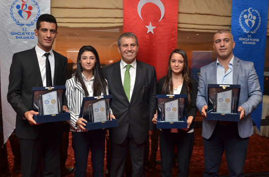 “AMATÖR Spor Haftası” etkinliğinde kulübümüzden 5 sporcumuz Amatör'ün “En”leri arasına seçildi. GENÇLİK Spor Bakanlığı'nın her yıl geleneksel olarak düzenlediği “Amatör Spor Haftası” etkinliğinde İzmir Büyükşehir Belediyespor'dan 5 sporcumuz Amatör'ün “En”leri arasına seçildi. Ege Palas Oteli'nde yapılan törende Gençlik Hizmetleri ve Spor İl Müdürü Ali Osman Tatlısu, İzmir ASKF Başkanı Kadri Yatkın, TFF Ege Bölge Müdürü Hamdi Kutval, Türkiye Futbol Antrenörleri Derneği İzmir Şubesi Başkanı Şaban Acarbay, kulüp yöneticileri ve sporcuları ve davetliler katıldı. İzmir BŞB'den Ümitler Tekvando Avrupa Şampiyonası'nda şampiyonluk yaşayan Simge Erensayın, Gençler Judo Avrupa Şampiyonası'nda birincilik elde eden Çiçek Akyüz ve Ümitler Judo Avrupa Üçüncüsü olan Dilan Doğan, Bulgaristan'da düzenlenen Avrupa Okçuluk Şampiyonası'nda Takım İkinciliği kazanan Yasemin Ecem Anagöz ve Aybüke Aktuna, Gençlik Hizmetleri ve Spor İl Müdürlüğü tarafından ödül ve plakete layık görüldü. Tüm sporcularımıza ve antrenörlerimize, kulübümüze bu onuru yaşattıkları için teşekkürlerimizi sunuyoruz.