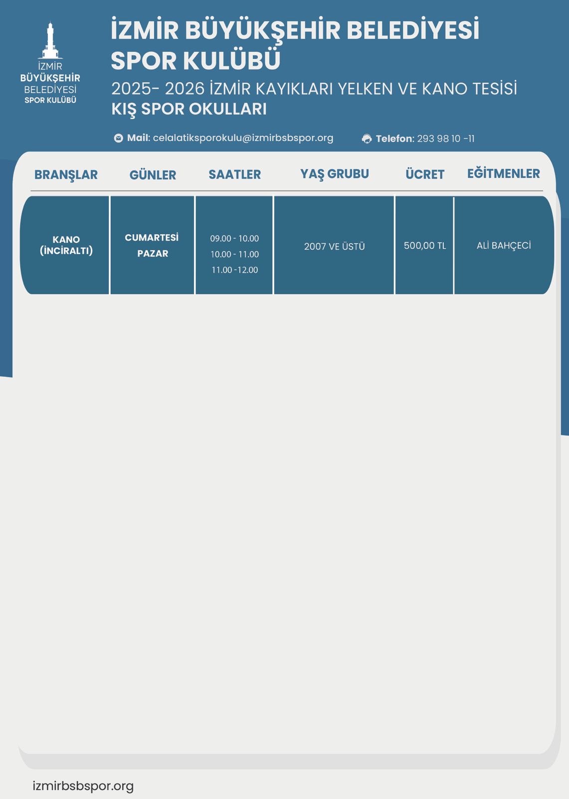 İzmir Kayıkları, Yelken ve Kano Tesisi Kış Spor Okulu Programı için Tıklayınız...