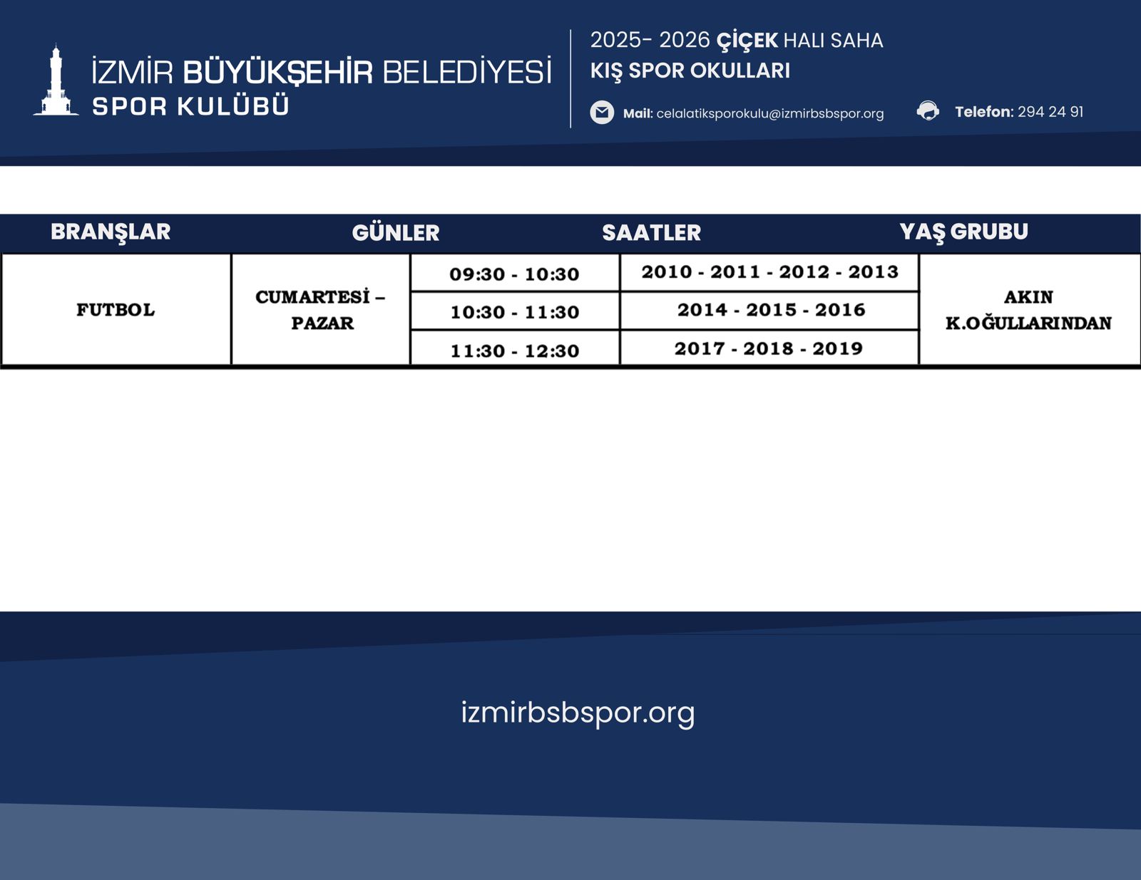 Çiçek Halısaha Kış Spor Okulu Programı için Tıklayınız...
