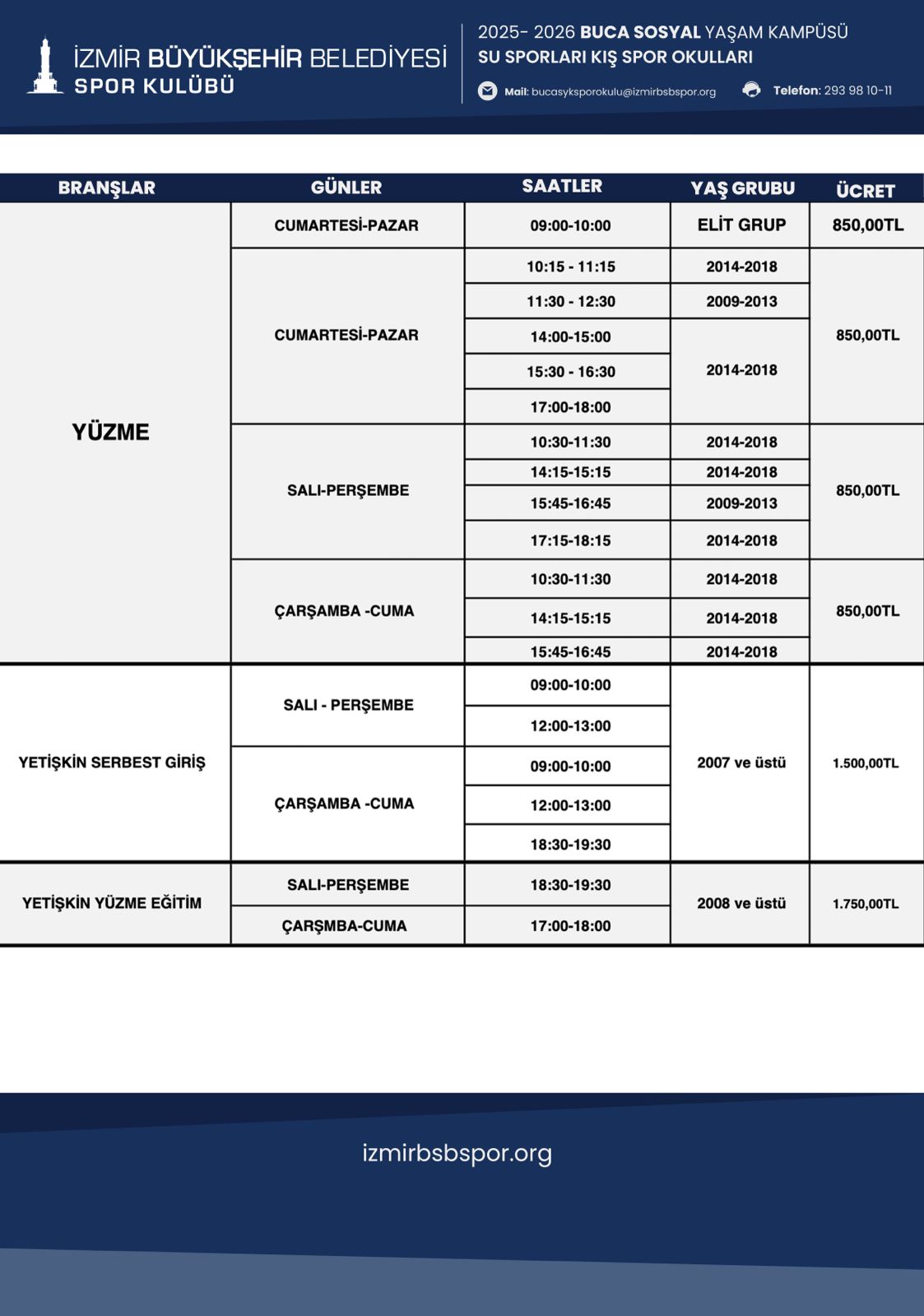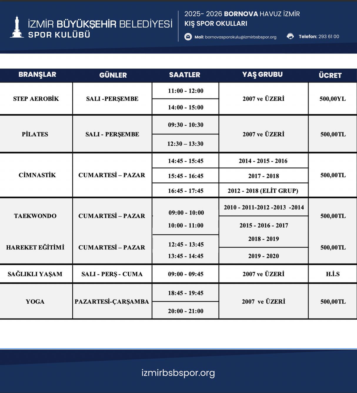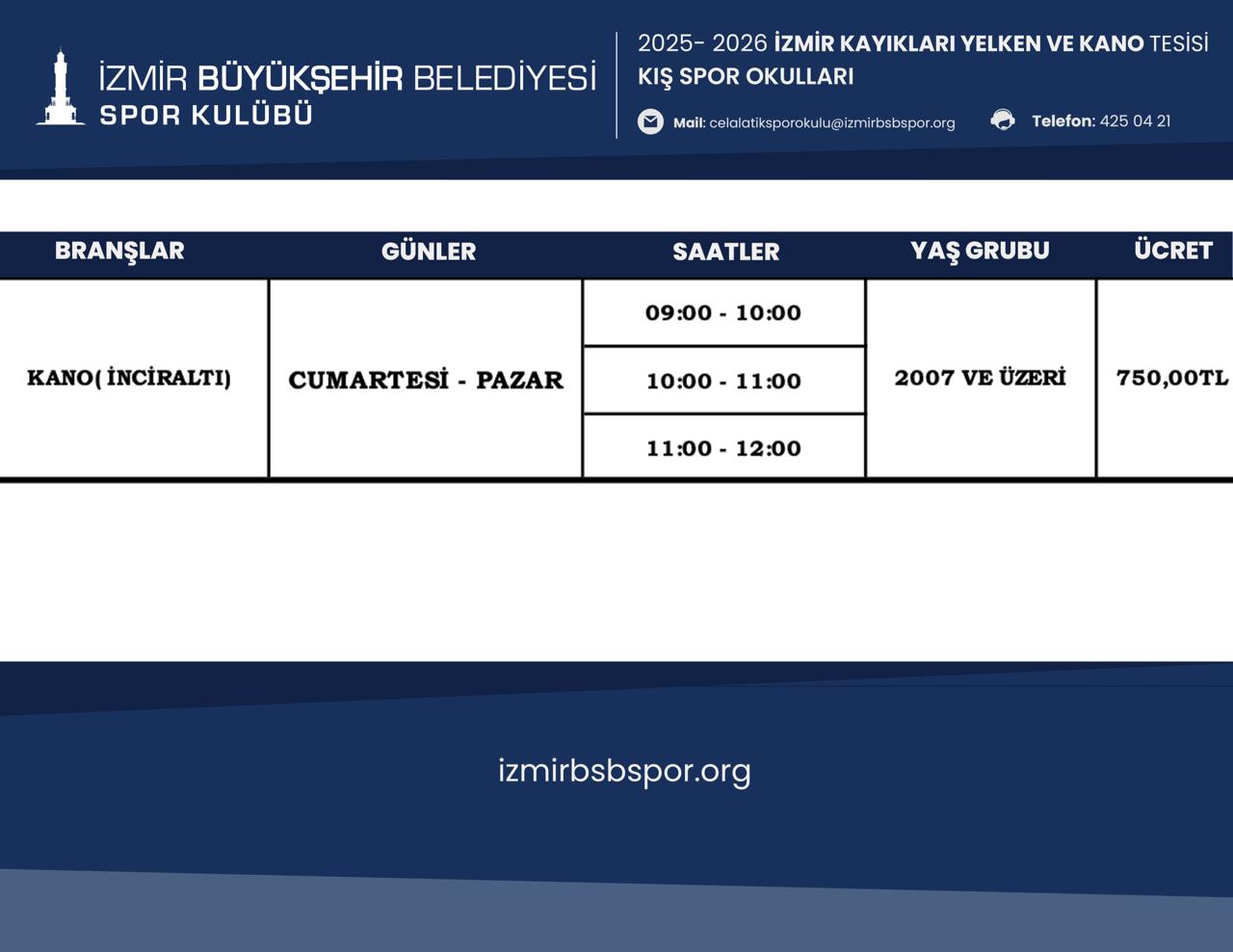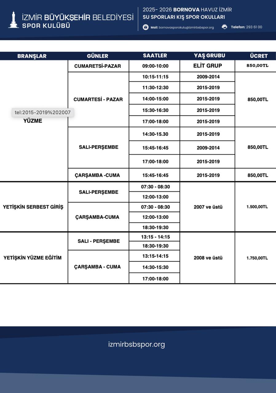 Bornova Havuz İzmir Su Sporları Kış Spor Okulu Programı için Tıklayınız....