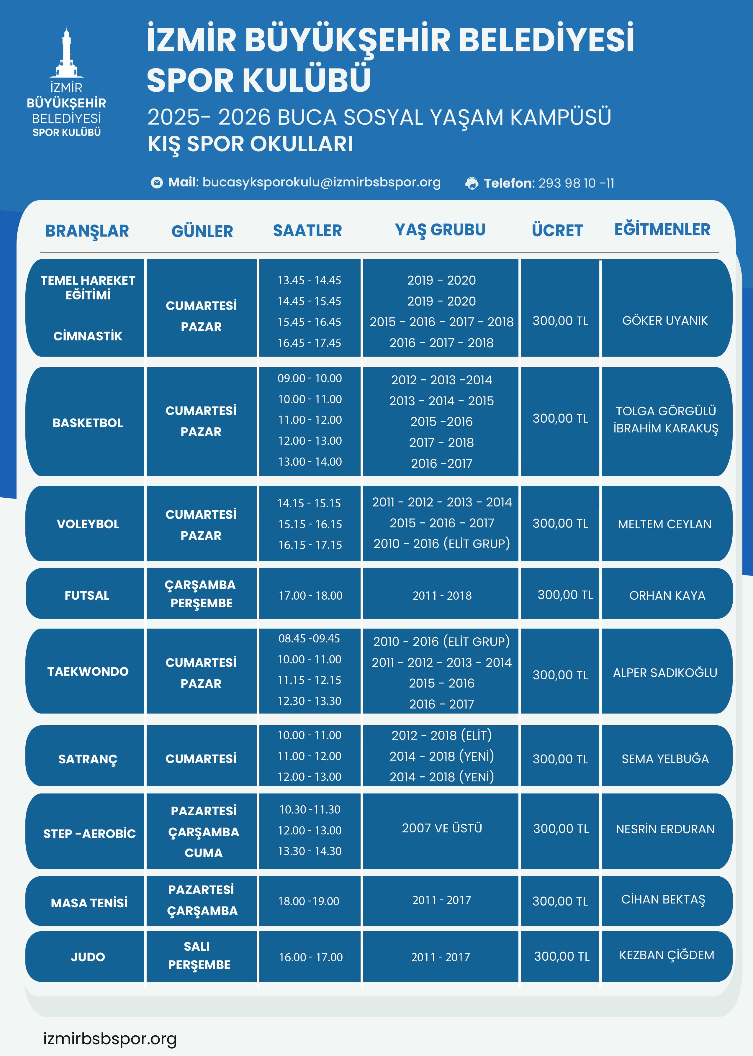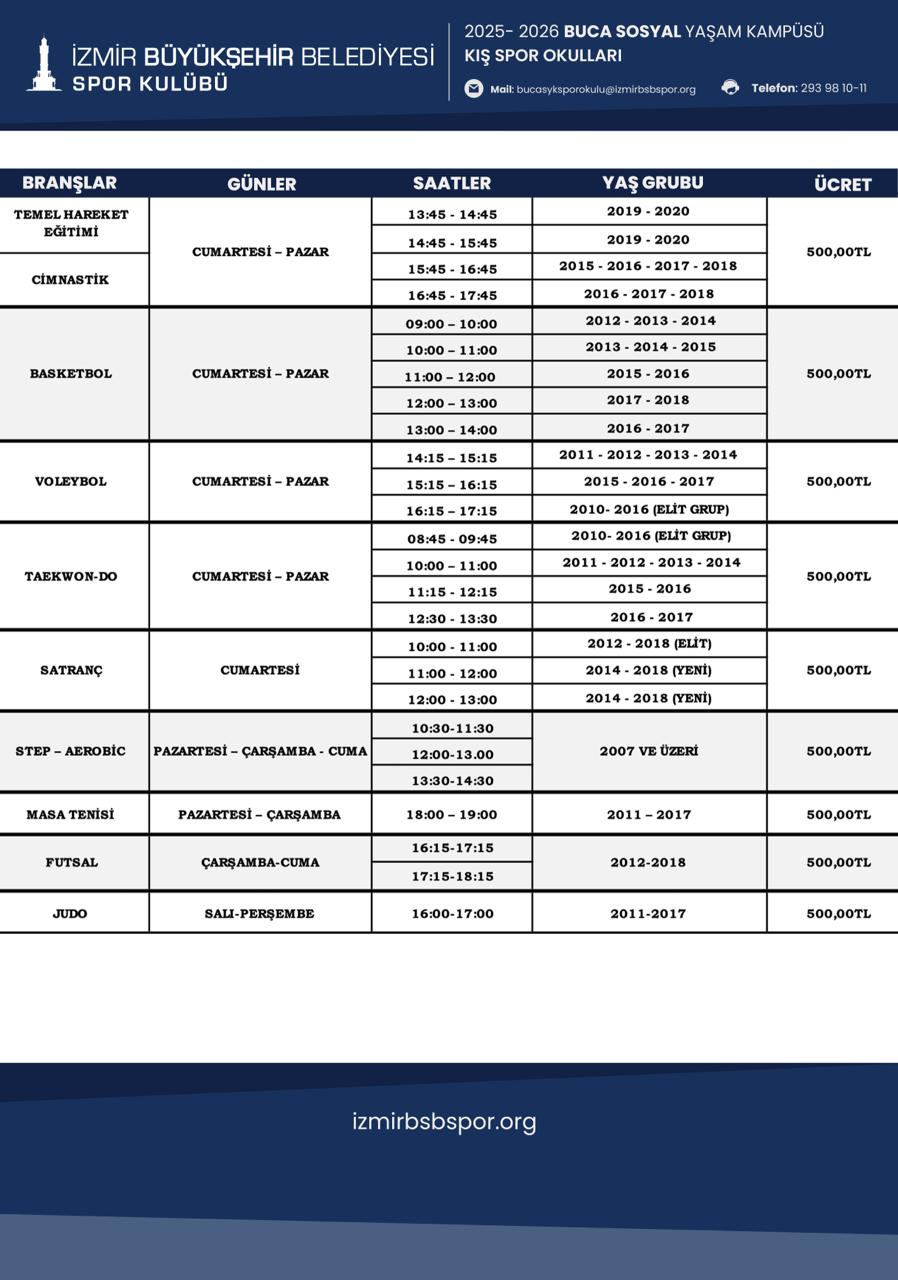 Buca Sosyal Yaşam Kampüsü Kış Spor Okulu Programı için Tıklayınız...