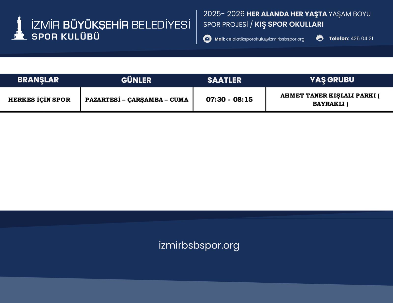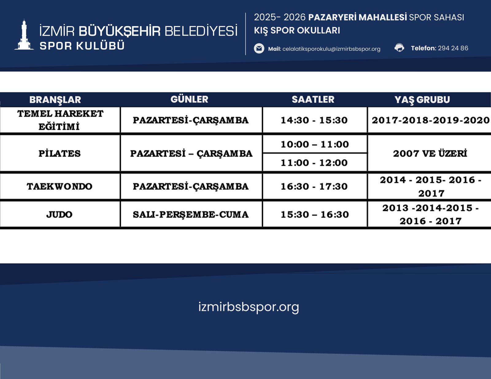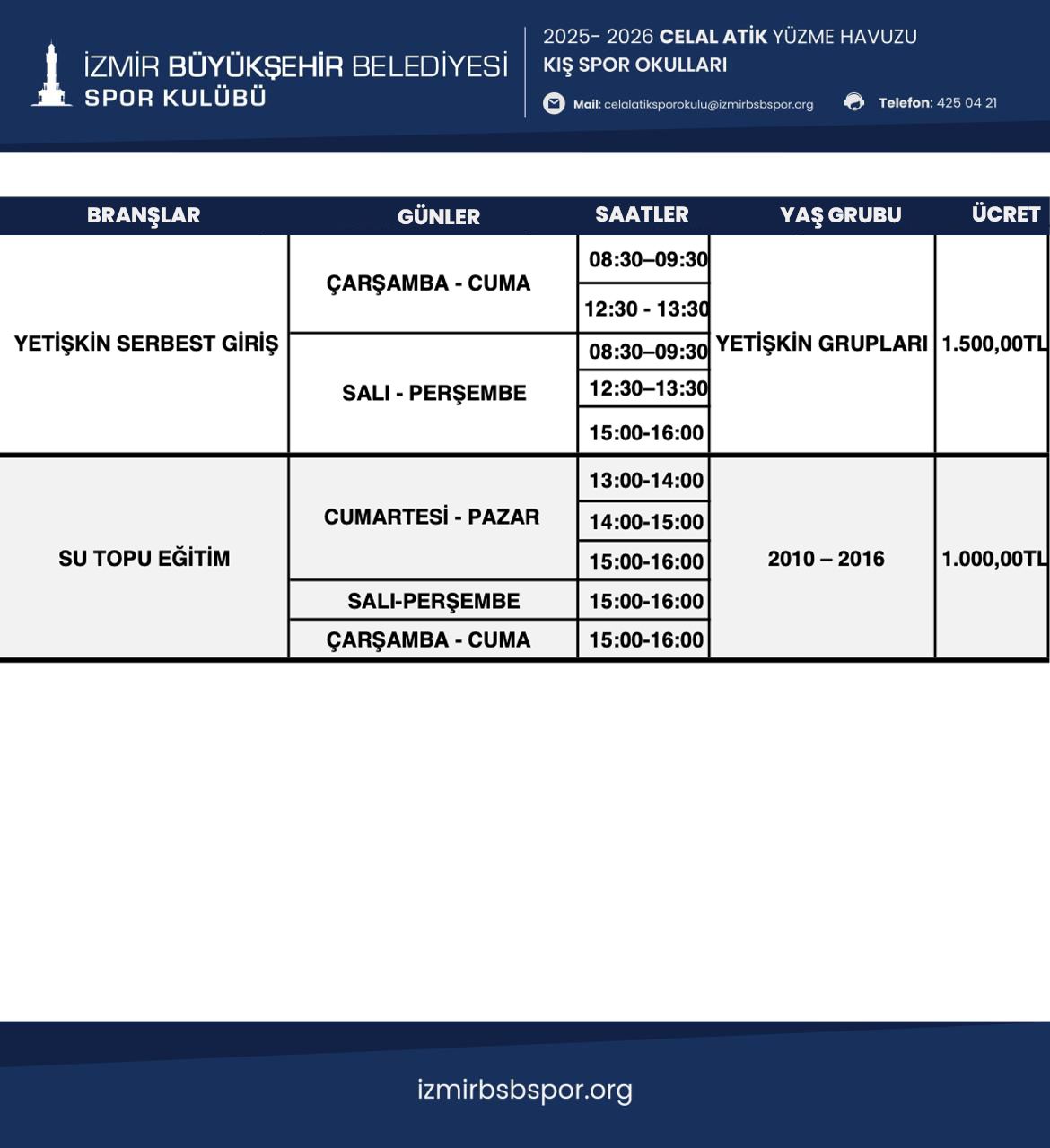 Bornova Havuz İzmir Kış Spor Okulu Programı için Tıklayınız...